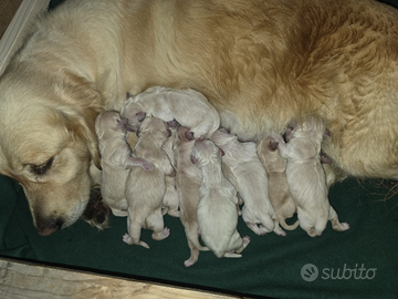 10 meravigliosi cuccioli di Golden retriever attendono di entrare in nuove famiglie, Razza dal carattere dolce e tranquillo che ama giocare, correre e fare lunghe passeggiate. Razza adatta proprio a tutti dai bambini agli anziani, per questo utilizzata per Pet terapy perché il suo carattere ne fa la differenza. Se vuoi venire a conoscerli chiama senza impegno. I cuccioli verranno consegnati sverminati, microcippati e con certificato di buona salute rilasciato dal veterinario. Per chi li desidera con il pedigree € 800.00