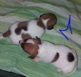Disponibili da fine febbraio cuccioli di jack russell , bianchi e marroni, pelo liscio, taglia piccola. Saranno sverminati , con primo vaccino e microchip inserito. I cuccioli sono vivaci e giocherelloni. Possibile vederli ,al momento sono disponibili maschi e femmine da poter scegliere. No perditempo,solo realmente interessati.