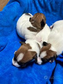 Vendo 5 dolcissimi cuccioli di jack russell terrier 3 maschi e 2 femmine nati al 7 Dicembre e pronti dopo 2 mesi. I cuccioli sono tricolor pelo raso zampa corta. Saranno ceduti con pedigree vaccinati sverminati e con microcip. I genitori di nostra proprietà sono visibili in allevamento.Per altre informazioni chiamateci al 3473090910 grazie Maddalena e Pier.