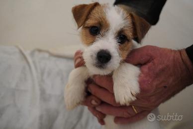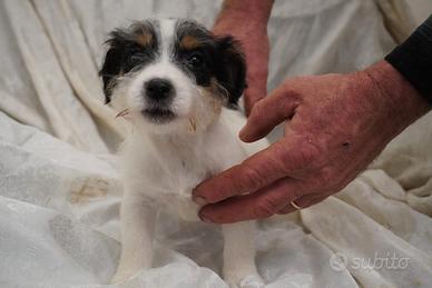 Disponibili cuccioli di Jack russell Terrier, nati il 13/11/2025, con pedigree ROI, tricolori e bianco tan pelo ruvido.