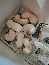 Cuccioli di Labrador, 2 femmine e 5 maschi, colore miele cercano casa. Nati il 12 Dicembre, saranno disponibili da metà Febbraio. Per tutte le informazioni chiamare il 338/2232476 o mandare una mail a valentina.alessio11@gmail.com. Grazie.