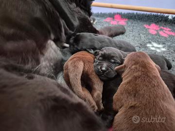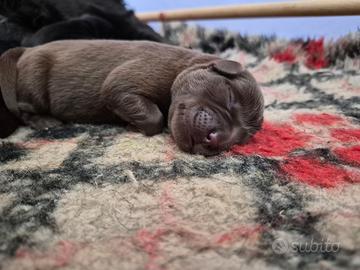 Disponibili splendidi cuccioli di Labrador Retriever nati il 10 aprile, cresciuti in ambiente familiare con amore e attenzione. Entrambi i genitori sono esenti da displasia con certificazioni ufficiali e testati ufficialmente per le principali patologie della razza. I cuccioli verranno consegnati dopo i 65 giorni di vita con pedigree,microchip,iscrizione anagrafe canina,Puppy kit ,3 sverminazioni e vaccini.
