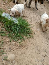 Cuccioli incrocio Lagotto e drahthaar nati 11 Aprile sono 3 femmine di cui due a pelo riccio bianco arancio e una a pelo liscio bianco e arancio, e un maschio che è l'ultima foto sempre di colore bianco arancio . Per chi è interessato può contattarmi sul numero di cellulare