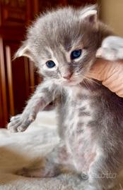 Gattini nati l'11/03/26. Si cedono da compagnia con doppia vaccinazione, pedigree ANFI, libretto sanitario, microchip e trattamento antiparassitario. Sono due maschi blue tabby, un maschio nero, due femmine black tortie. Genitori testati per le principali malattie genetiche e visibili in allevamento. Siamo in provincia di Alessandria.