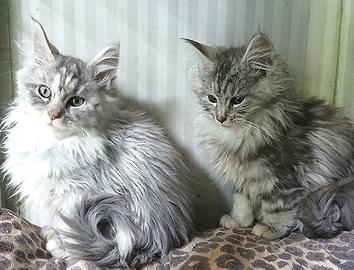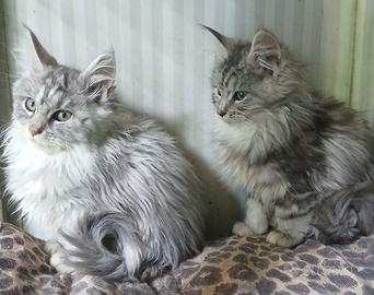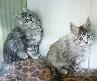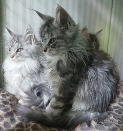 Meravigliosi cuccioli di Maine Coon, maschi e femmine nati il 20 settembre. Hanno un soffice e lungo mantello silver tabby. Vengono ceduti con pedigrèe, libretto sanitario, vaccinati e sverminati. Per maggiori informazioni contattare telefonicamente al 3331634833 dopo le 14