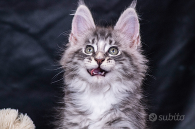 Presso l'allevamento di Maine coon Crann Bethadh sono disponibili cuccioli di Maine coon con Pedigree Anfi. Verranno ceduti intorno ai 3 mesi di età con doppia vaccinazione, microchip, sverminazione, antiparassitario, copia dei test genetici ed ecografici dei genitori e puppy kit