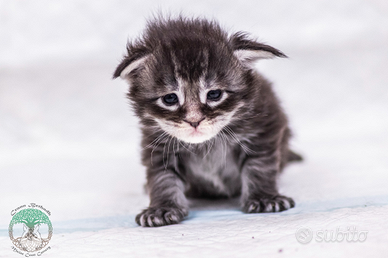 Disponibili, presso allevamento di Maine coon Crann Bethadh l, cuccioli con pedigree Anfi. Saranno ceduti con doppia vaccinazione, microchip, esami feci e giardia, sverminazione e antiparassitario, copia test genetici e ecografici dei genitori, puppy kit.