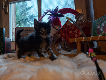 Cuccioli di Maine Coon nati il 16/10. Saranno disponibili a raggiungere la nuova casa dal 22/01. Pedigree Agi Mamma e Papà n/n per le principali malattie genetiche.