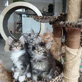 Bellissimi cuccioli di Maine Coon, sono disponibili alla prenotazione. Verranno ceduti a tre mesi con pedigree, libretto sanitario con doppia vaccinazione, sverminazione e antiparassitario, visita veterinaria prevendita con certificato di buona salute, garanzia sanitaria e il contratto di cessione, test di mamma e papà per hcm, hcm a31, pkd, PK def, atrofia muscolare spinale, atrofia retinica, ecocardio ed elettrocardiogramma tutto negativo.