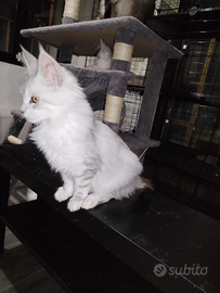 Disponibili subito,cuccioli da tre mesi di età, di Maine Coon Silver shaded, total white, brown . Genitori visibili taglia xxl . I cuccioli verranno ceduti con libretto sanitario completo di doppia sverminazione iter vaccinale completo, pedigree da compagnia, abituati a lettiera e tiragraffi, a cani, simili , vivono in famiglia Ottimo carattere socievole. Genitori testati geniticamente di proprietà esenti fiv felv hcm pkd ecocardio nella norma. No perditempo. Solo a veri amanti della razza. Possibilità di consegna personalmente