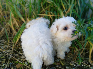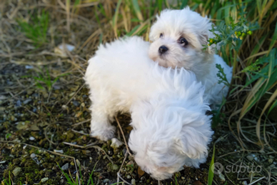Bellissimi cuccioli di Maltese nati da genitori di mia proprietà e quindi visibili i piccoli godono di ottima salute e vengono ceduti alla loro nuova famiglia all' età di due mesi