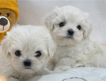 Tenera e affettuosissima cucciolata di maltese (maschio e femmina) di 2 mesi vi aspetta per darvi tutto il suo amore! Con il loro candido pelo anallergico non soggetto a muta, le loro ridotte dimensioni, la capacitá di donare affetto e tenerezza a chiunque, i maltesi sono cagnolini adatti a tutta la famiglia e siamo sicuri che scioglieranno il cuore anche a voi! Ogni cucciolo viene ceduto completamente vaccinato e sverminato, completo di microchip, iscrizione al registro anagrafico nazionale e visita veterinaria certificata. Disponibili anche altre sorelline e fratellini. Genitori sempre visibili in allevamento. Assieme al cucciolo verrà inoltre fornito un corredo di accessori omaggio ed un fascicolo di consigli che vi permetterà di iniziare fin da subito a prendervi cura di lui al meglio. E ovviamente contate su di noi per assistenza durante tutta la crescita! Possibilità di pagamento in comode rate. Per qualsiasi informazione telefonateci al Ci troviamo a: 15 min da Parma 40 min da Bologna 1h da Verona e da Mantova 1h e 20 da Milano 1h e 40 da Firenze