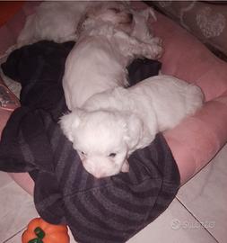 Cuccioli di maltese bellissimi. Mamma e papà in foto. Verranno cedutia circa due mesi di età, previa sverminazione.