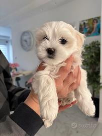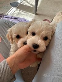 Disponibili da subito cuccioli di maltese femminucce e maschietti due mesi e mezzo svezzati sverminati e vaccinati abituati al uso della traversina. Per info per visionarli foto video. Genitori visibili insieme ai cuccioli I genitori pesano sui 3 kg Tel 3933398759