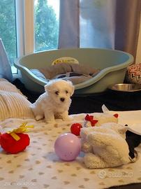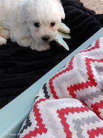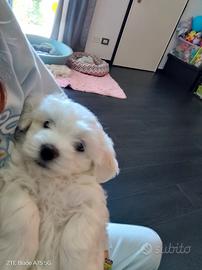 Cucciolo maltese maschio compie 2 mesi il 20 aprile cerca coccole e tanto amore. Unico disponibile di una cucciolata privata, lontano dallo stress degli allevamenti. Taglia normale senza pedigree. Già svezzato, vaccinato e abituato alla traversina. Contattatemi solo se realmente interessati.