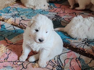 Vendesi Cuccioli di Pastore Abruzzese Maremmano nati il 23-02-2026 selezionati con Pedigree disponibili 5 maschio e 3 femmina. Genitori Melissa dei Giunoni X Serse. I cuccioli veranno ceduti previo trattamento antiparassitario primo vaccino e pedigree