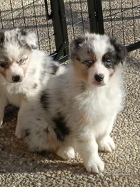 Pastore Australiano cuccioli con Pedigree nati il 2 di Gennaio , restano disponibili alla presentazione,una femmina Blue Merle coda lunga,occhi azzurri ,una femmina Rossa tricolore coda lunga, un maschio Nero tricolore coda corta naturale, un maschio Blue Merle coda lunga occhi azzurri . Genitori entrambi visibili e testati per Displasia anche gomito test genetici DNA depositato .I cuccioli verranno consegnati con Pedigree, tutto libretto sanitario, ciclo di sverminazzioni, primo vaccino, faranno visita Veterinaria daremo un Puppy Kit Restiamo in provincia di Brescia solo contatto telefonico o whatsapp grazie cel 3683251060