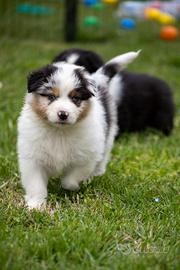 Disponibili 8 cuccuoli di Pastore Australiano Blue merle Black tricolor Genitori con lastre e test genetici ufficiali Verrano ceduti dopo i 2 mesi e mezzo con microchip, vaccini e pedigree