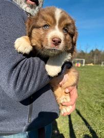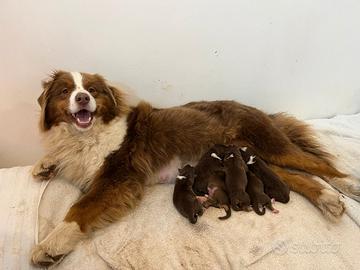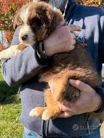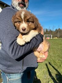Cucciolata Pastore Australiano - Australian Shepherd nata il 12 febbraio. Cuccioli disponibili nella seconda metà di Aprile. Meravigliosi cuccioli disponibili alla prenotazione maschi e femmine Red Tricolor coda lunga. Verranno ceduti dopo i 60/70 giorni sverminati, con microchip, libretto sanitario con prima vaccinazione e pedigree, cuccioli da "compagnia" (no per allevamento e riproduzione). I genitori hanno i certificati per tutti i test genetici per escludere malattie ereditarie, esenzione displasia anche e gomiti ufficiale celemasche, visita cardiologica ed oculistica. Allevamento iscritto all'albo ENCI con affisso "del sentiero delle tracce" con sede presso Azienda agricola La casa dei daini Venegono Inferiore Varese Per informazioni Ferruccio Allevatore e addestratore iscritto all'albo ENCI