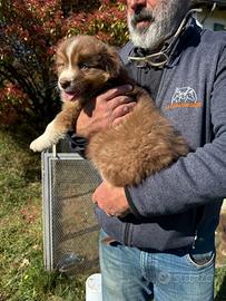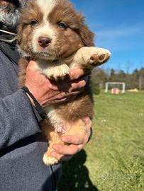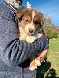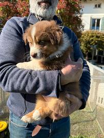 Cucciolata Pastore Australiano - Australian Shepherd nata il 12 febbraio. Cuccioli disponibili a partire dalla seconda metà di Aprile. Meravigliosi cuccioli disponibili alla prenotazione maschi Red Tricolor. Verranno ceduti dopo i 60/70 giorni sverminati, con microchip, libretto sanitario con prima vaccinazione e pedigree, cuccioli da "compagnia" (no per allevamento e riproduzione). I genitori hanno i certificati per tutti i test genetici per escludere malattie ereditarie, esenzione displasia anche e gomiti ufficiale celemasche, visita cardiologica ed oculistica. Allevamento iscritto all'albo ENCI con affisso "del sentiero delle tracce" con sede presso Azienda agricola La casa dei daini Venegono Inferiore Varese Per informazioni Ferruccio Allevatore e addestratore iscritto all'albo ENCI