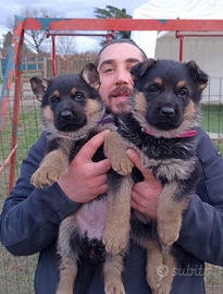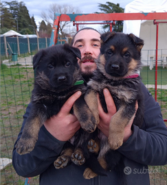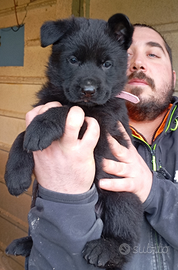 Bellissima cucciolata di pastori tedeschi Total black e nero focati con 40 giorni di vita. Sono disponibili sia maschi che femmine i genitori sono esenti da displasia dell' anca e del gomito.