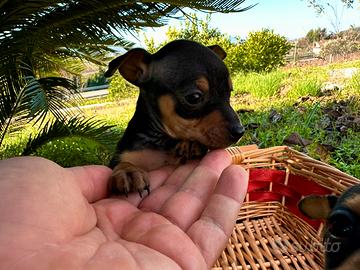 Disponibili ultimi due cuccioli maschietti di pincher toy, taglia piccolissima, già svezzati e sverminati, genitori entrambi toy. Solo realmente interessati