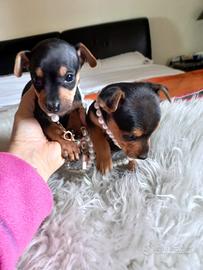 Disponibili mini cuccioli di pinscher nano originali, Un maschio e una femmina , quasi 60 giorni, una miniatura!! pelo lucidissimo perché alimentati con i migliori prodotti. Verranno consegnati con ciclo vermifugo e a ntiparassitario .carattere molto dolce intelligente e facilmente addestrabili. Abituati alla traversa e a stare in appartamento pronti per la consegna. Rispondo solo telefonicamente 3208449822