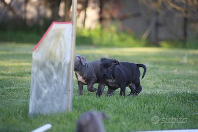 Allevamento professionale dispone di Cuccioli di American Pit Bull Terrier in standard Ukc in pronta consegna. I cuccioli attualmente disponibili sono in vendita a costi variabili, e possono essere saldati anche in comode rate mensili senza interessi. ( fino a 12 ). Sono disponibili a alla consegna in quanto hanno compiuto i 60 giorni. Premetto che tutti i nostri piccoli vengono ceduti ad almeno 60 giorni, con pedigree, libretto sanitario, microchip, ciclo vaccinale concluso, 3 cicli di vermifugo effettuati e contratto di acquisizione con tutte le responsabilitá dell'allevamento circa che patologie ereditarie geneticamente trasmissibili e manuale di corretta gestione e inserimento. I genitori sono soggetti sani, testati per displasia anche e gomiti e ATAXIA CLEAR, con ottima genealogia ed estremamente docili, socievoli ed equilibrati. È possibile pagare il proprio cucciolo anche a rate ( fino a 4, mediate il servizio Alma Pay o Klarna - oppure fino a 12 mediante Hey Light ) L'eventuale pagamento dilazionato, funziona come segue; al momento della conferma di acquisto arriverà al cliente un link tramite sms, che potrà inseirire i dati di una carta ( anche prepagata) o un iban e verrà addebitata la prima rata che per l'allevamento funge da riserva. Da quel momento il piccolo potrà essere consegnato. Le successive rate verranno decurtate automaticamente nei mesi successivi lo stesso giorno solare del mese del primo pagamento. Per quanto riguarda il trasporto, se necessario, qualora l'acquirente non potesse ritirare il suo cucciolo in allevamento ( siamo in Strada Coramina 46, Ostellato - Ferrara ), abbiamo i contatti del nostro trasportatore professionale che per una cifra compresa tra 100 e 150 euro in base alla tratta, consegna in tutta Italia.