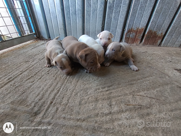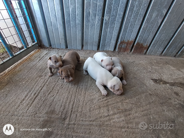Vendo bellissimi cuccioli di Pitbull nati il 21 novembre sono 3 femmine e 2 maschi (quelli dentro il riquadro rosso). I cuccioli saranno disponibili per la metà di gennaio.. genitori visibili in foto..