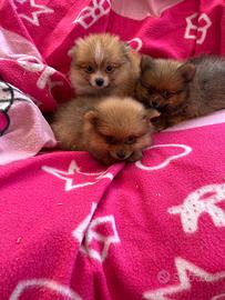 cuccioli di Pomerania Toy di due mesi, nati in casa da genitori sani.
