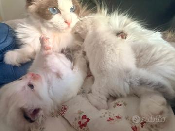 Allarme Tenerezza: La "Banda dei Morbidosi" cerca Casa! Se cerchi un gatto... passa oltre. Se cerchi una nuvola di fusa, un compagno di vita che ti segue come un ombrellino e che si scioglie letteralmente tra le tue braccia, allora sei nel posto giusto! Il nostro allevamento amatoriale apre ufficialmente le prenotazioni per 4 meraviglie di pura razza Ragdoll. Chi sono i protagonisti? Abbiamo una squadra quasi tutta al maschile (ma che gentiluomini!): 3 Maschietti: Dei veri giganti buoni, campioni di pigrizia e fusa a volume altissimo. 1 Femminuccia: Piccola principessa, dolce e curiosa, la regina del gruppo. Quando potrete abbracciarli? I piccoli saranno pronti per invadere i vostri divani a partire da metà giugno. Il tempo giusto per finire lo svezzamento, imparare l'educazione felina dalla mamma e preparare la valigia! Cosa portano in dote? Non lasciamo nulla al caso. Ogni cucciolo verrà ceduto con: Pedigree ufficiale (l'unico documento che attesta che il tuo gatto è un vero Ragdoll). Ciclo vaccinale completo e trattamenti antiparassitari. Libretto sanitario con certificato di buona salute. Kit Cucciolo: un "pacco gara" con il loro cibo preferito e qualche giochino per rendere il trasloco meno stressante. Consegna Speciale Ci teniamo a conoscervi di persona! La consegna avverrà esclusivamente a mano: niente corrieri o spedizioni impersonali. Vogliamo assicurarci che i nostri piccoli finiscano in mani piene d'amore. Vieni a trovarci? I cuccioli crescono in un ambiente familiare, coccolati h24. Se vuoi venire a scegliere il tuo nuovo migliore amico o semplicemente vuoi saperne di più, scrivici un messaggio! Attenzione: Creano dipendenza. Una volta provato un Ragdoll, non tornerai più indietro! #Ragdoll #CuccioliRagdoll