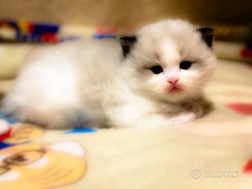 Nel nostro allevamento amatoriale sono nati adorabili cuccioli di razza Ragdoll La dolcezza e la voglia di giocare li accomuna entrambi. Nati e cresciuti in un ambiente familiare con tanta attenzione e affetto, abituati fin da subito al contatto umano e seguiti scrupolosamente dai nostri veterinari. Vengono ceduti come cuccioli da compagnia già sterilizzati con spese veterinarie per intervento di sterilizzazione già comprese nel prezzo, doppio vaccino trivalente, ciclo di sverminazione completo, libretto sanitario di buona salute, microchip, Pedigree Anfi e kit di benvenuto. Chiaramente corredati da analisi genetiche dei genitori che attestano la negatività alle principali malattie genetiche del ragdoll. Per info: 349/4218357 Barbara