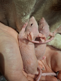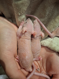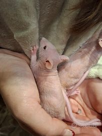 Cedo 3 rattini nudi maschi di circa 1 mesetto .. di colore rosa...molto docili non mordono abituati al contatto umano.