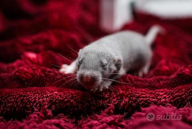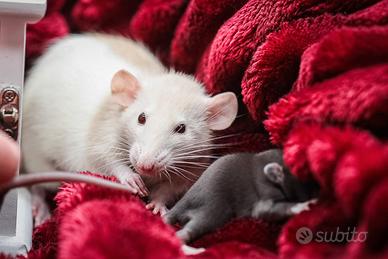 Ratti domestici, trattati con l'antiparassitario e vermifugo, abituati al contatto con l'uomo fin dalla nascita. POSSIBILITÀ DI VARI PATTERN E TIPOLOGIE REX, DUMBO, STANDARD, REX/DUMBO Possibilità di staffetta in tutto il nord NO PERDITEMPO