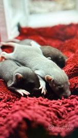 Piccoli di ratti domestici, trattati con l'antiparassitario e sverminati, abituati al contatto fin dalla nascita. POSSIBILITÀ DI VARI PATTERN E TIPOLOGIE REX, DUMBO, STANDARD Possibilità di staffetta NO PERDITEMPO