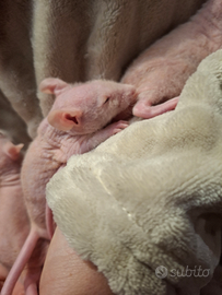 Cedo 3 bellissimi cuccioli di ratto nudo maschi di circa 1 mesetto e mezzo... di colore rosa non mordono abituati al contatto umano