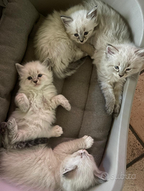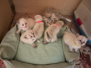 Allevamento certificato,Disponibile 1 cucciolata con 5 cuccioli di gatto razza Siberiana ipoallergenica colorazione Neva Masquerade nati martedi 29/04/2025 ceduti con regolare pedigree Enfi e certificati medici già sverminati e vaccinati e abituati ad usare la cassettina per i bisogni, genitori testati FIV e FELV, si accettano prenotazioni e si effettuano prove di allergia completamente gratuite e senza nessun impegno ..Per informazioni contattatemi pure resto a disposizione