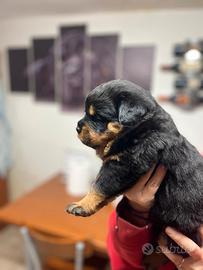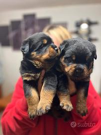 Da allevamento con affisso riconosciuto ENCI, cucciolata da due rottweiler riproduttori selezionati (Pedigree Rosa) genitori entrambi campioni: Padre: CH-BRUNO del vecchio rott (Ch.W Giacomo dell'Oplite x Lira del Vecchio Rott) Riproduttore selezionato Esente displasia anche e gomiti HD Free ED Free, JlPP Free NAD Free LEMP Free XL-MTM Free Campione italiano di bellezza Campione Sloveno AUSLAND-JUGENDSIEGER 2024 IFR EUROPEANYOUNGSIEGER 2024 VDH BUNDESJUGENDSIGER 2024 BH-VT ADRK Madre: CH- Isotta nobis dominee (Face dei calabresi x CH-Connor) Giovane campionessa Italiana Campionessa di bellezza Slovena ZTP Riproduttrice selezionata Esente diplasia anche e gomiti HD-A, ED-0 JLPP N/N ADRK BH-VT I cuccoili verranno consegnati al compimento dei 60 giorni con vaccini, pedigree, libretto sanitario, microchip, passaggio di proprietà. Puppy Kit. Chiamare telefonicamente per venire a vederli.