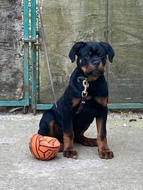 E' disponibile cucciolo di Rottweiler maschio di quasi 3 mesi con pedigree, microchip e vaccini con libretto sanitario. I genitori del cucciolo sono esenti da displasia anca e gomiti come da certificazione apposta sui loro pedigree. Per ulteriore info contattatemi.