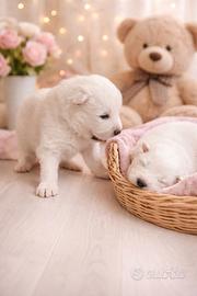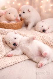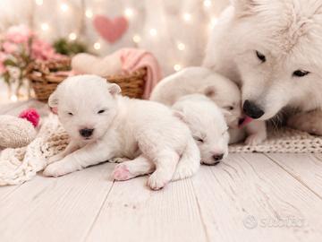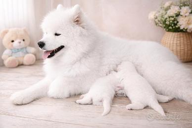 Disponibili ultimi due cuccioli di Samoiedo nati il 26 Marzo 2026 che sarenno consegnati dal 27 Maggio con Pedigree Enci, vaccinazioni, ciclo sverminale completo, libretto veterinario, certificato di buona salute, iscrizione anagrafe canina, Microchip, passaggio di proprietà. I genitori hanno Pedigree Enci e DNA depositati. I cuccioli sono adatti a faamiglie con bambini e a case con altri animali. I piccoli possono essere consegnati in tutta Italia (comprese Sicilia e Sardegna). Per informazioni potete contattarmi tramite messaggio whatsapp al 3343205395.