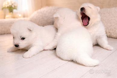 Disponibili ultimi due cuccioli di Samoiedo nati il 26 Marzo 2026 che sarenno consegnati dal 27 Maggio con Pedigree Enci, vaccinazioni, ciclo sverminale completo, libretto veterinario, certificato di buona salute, iscrizione anagrafe canina, Microchip, passaggio di proprietà. I genitori hanno Pedigree Enci e DNA depositati. I cuccioli sono adatti a faamiglie con bambini e a case con altri animali. I piccoli possono essere consegnati in tutta Italia (comprese Sicilia e Sardegna). Per informazioni potete contattarmi tramite messaggio whatsapp al 3343205395.