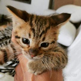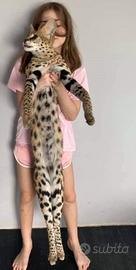 Disponibili bellissimi cuccioli di Savannah con raro colore oro Savannah F5 , incrocio di Serval e gatto di quinta generazione quindi legale in Italia e Svizzera. Hanno 3 mesi e verrànno ceduti dopo lo svezzamento di 3 mesi. Carattere dolcissimo ed estremamente affettuoso. Manto morbidi e molto lucidi a pelo corto.