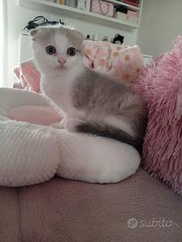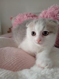 Disponibile su prenotazione cucciola di Scottish fold, bicolore bianca e lilac, è nata l' 11 Dicembre, ha 45 giorni circa e sarà ceduta al compimento dei 2 mesi, sverminata e con primo vaccino. La gattina è svezzata e sa utilizzare la lettiera e il tiragraffi.I genitori sono visibili. Per vederla da vicino e/o maggiori informazioni contattare il 3393255706.