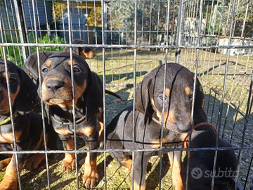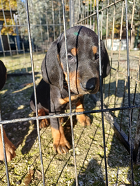 Dispobili cuccioli di segugio italiano nero focato quattro occhi a pelo raso.
