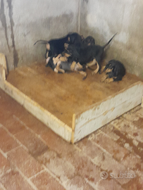 Cedo cuccioli di segugio nero focati selezionati per la caccia alla lepre, incrocio tra madre segugio dell'appennino e padre segugio it. a pelo forte,qualche maschio e femmina. verranno ceduti da metà agosto in poi dopo 3 sverminazioni e vaccino, nati 8 giugno 2025, per ulteriori informazioni chiamare il 3355447322