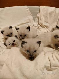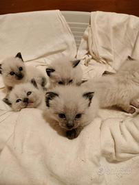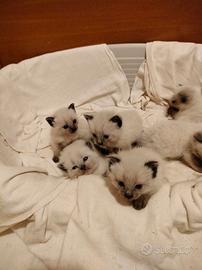 Sono 5 cuccioli di siamese nati il 6 marzo saranno pronti il 6 aprile in avanti nati e cresciuti in casa saranno dati con prima vaccinazione e doppia avermi schermatura e con libretto sanitario di buona salute a 400 euro per ulteriori informazioni chiamare o mandare un messaggio a Silvana al numero 3336946066
