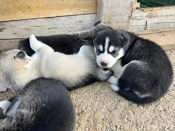 Vendo bellissimi cuccioli di Siberian Husky 100% originali. i cuccioli sono nati il 23 Aprile 2025, i genitori come vedete sono bellissimi!