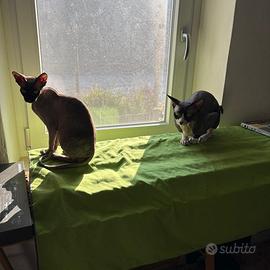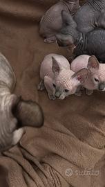 Vendo cuccioli di Sphynx nati l' 8/03/26 Disponibili dai 60 giorni, primo vaccino e svezzati. Genitori fiv felv negativi, ecocardio eseguiti. Ancora disponibili : 1 femmina e 4 maschi.