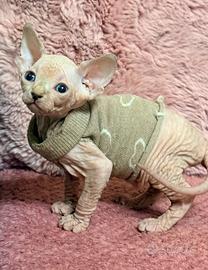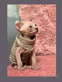Splendida cucciolata di Sphynx, nati e cresciuti in un ambiente familiare ricco d'amore. Cerchiamo per loro famiglie speciali, pronte a farsi stravolgere la vita dalla loro incredibile dolcezza. La cucciolata è composta da 5 piccoli tesori: o 4 Femmine (sia versione Elf con le tipiche orecchie ricurve, sia Straight) di 33 giorni o 1 Maschio( elf )di 47 giorni (Verranno consegnati al compimento dei 90 giorni ) I genitori sono di nostra proprietà e sono regolarmente testati e negativi per: o HCM o FIV / FELVo Herpes Viruso Clamidia Ogni cucciolo verrà consegnato con un protocollo sanitario completo: 1. Doppia vaccinazione (incluso richiamo e copertura specifica per Clamidia). 2. Ciclo di sverminazione completo (esteso anche alla giardia). 3. Libretto sanitario e certificato di buona salute Vogliamo che l'inserimento nella nuova casa sia perfetto. Ogni piccolo partirà con un ricchissimo Kit Cucciolo che comprende: o Cibo di alta qualità per i primi giorni. o Copertina con l'odore della mamma (per ridurre lo stress). o Giochi preferiti. o Maglioncino per proteggerlo dal freddo. Per info , foto, video ? contattatemi al [3518552663] o tramite messaggio. NB: Si prediligono contatti da parte di persone consapevoli dell'impegno e della particolarità della razza.