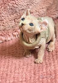 splendida cucciolata di Sphynx, nati e cresciuti in un ambiente familiare ricco d'amore. Cerchiamo per loro famiglie speciali, pronte a farsi stravolgere la vita dalla loro incredibile dolcezza. La cucciolata è composta da 5 piccoli tesori: o 4 Femmine (sia versione Elf con le tipiche orecchie ricurve, sia Straight) di 33 giorni o 1 Maschio Elf di 47 giorni Verranno consegnati al compiersi dei 90 giorni I genitori sono di nostra proprietà e sono regolarmente testati e negativi per: o HCMo FIV / FELVo Herpes Viruso Clamidia Ogni cucciolo verrà consegnato con un protocollo sanitario completo: 1. Doppia vaccinazione (incluso richiamo e copertura specifica per Clamidia). 2. Ciclo di sverminazione completo (esteso anche per la giardia). 3. Libretto sanitario con certificato di buona salute Vogliamo che l'inserimento nella nuova casa sia perfetto. Ogni piccolo partirà con un ricchissimo Kit Cucciolo che comprende: o Cibo di alta qualità per i primi giorni. o Copertina con l'odore della mamma (per ridurre lo stress). o Giochi preferiti. o Maglioncino per proteggerlo dal freddo. Per info,foto, video contattatemi al ? 3518552663 o tramite messaggio privato. NB: Si prediligono contatti da parte di persone consapevoli dell'impegno e della particolarità della razza.